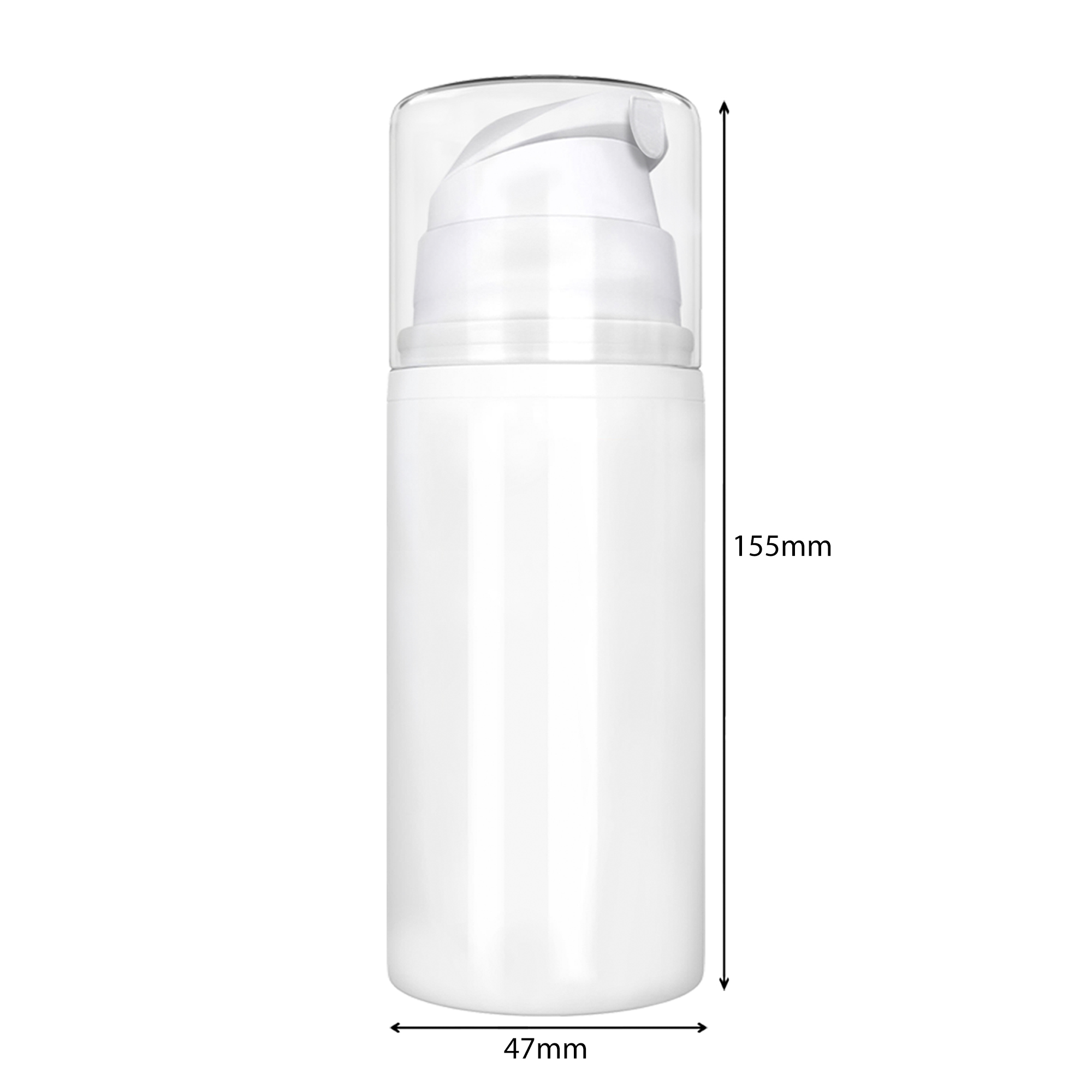 150ml Pearl Airless Dispenser Bottle Pearl White Pump and Clear Over-Cap