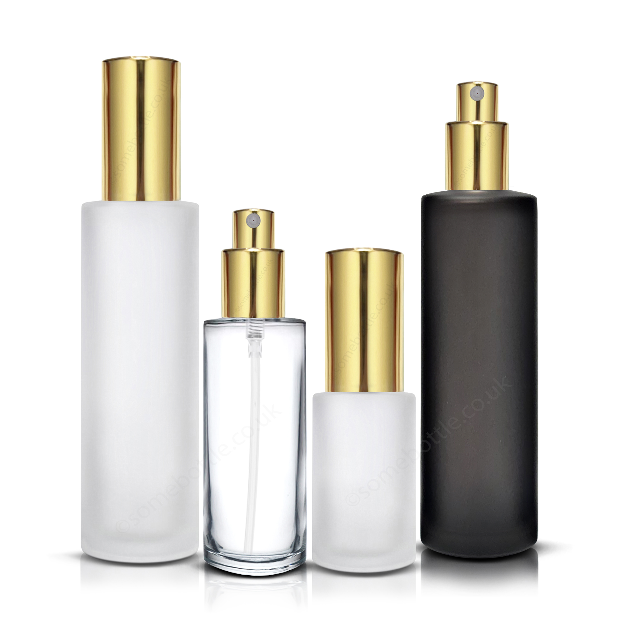 These 20/410 gold aluminium mist spray atomiser suit most 20mm neck bottles including 10ml, 30ml, 50ml and 100ml cylindrical glass or plastic bottles